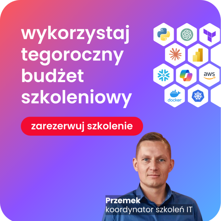 Maksymalnie praktyczne szkolenia z pełnym wsparciem trenerów – dla Ciebie i Twojego zespołu. Zbuduj przewagę z technologią i sztuczną inteligencją.