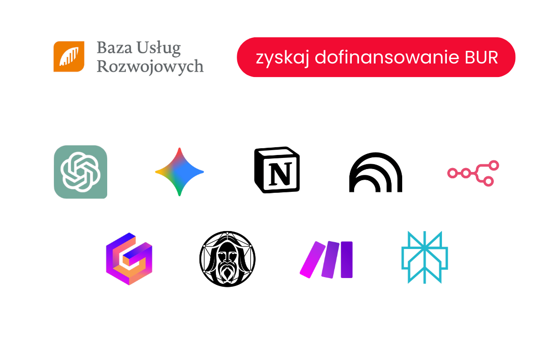 - Założenie kont w narzędziach: ChatGPT, Gemini, Perplexity, NotebookLM, Gamma.app, Make i Notion